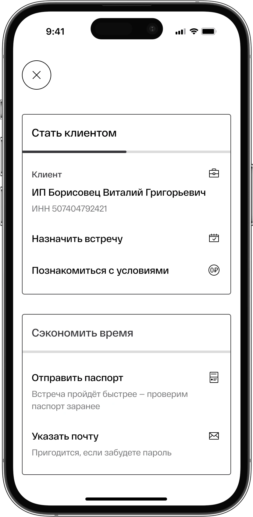 Открытие счёта